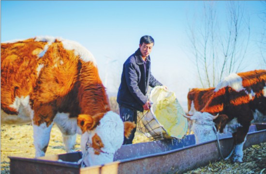 清掃牛舍、喂料蓄水、鍘草清糞……天色漸暗,明水縣光榮鄉(xiāng)立志村的路來寶仍在自家牛棚里忙碌著。“前段時(shí)間剛賣出10多頭牛犢,現(xiàn)在還剩8頭母牛,4頭小牛,它們可是我的‘搖錢樹’,咱能脫貧致富都是它們的功勞。”看著自家的“脫貧功臣”,路來寶滿眼激動。難以想象,記者面前這個(gè)滿身泥污的養(yǎng)牛“行家”在兩年前還是個(gè)對養(yǎng)殖一竅不通的貧困戶。在他的帶領(lǐng)下,立志村掀起了一股黃牛養(yǎng)殖熱。