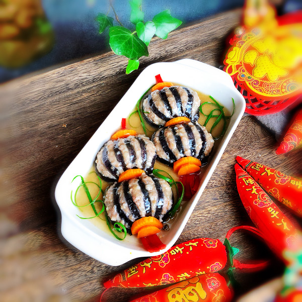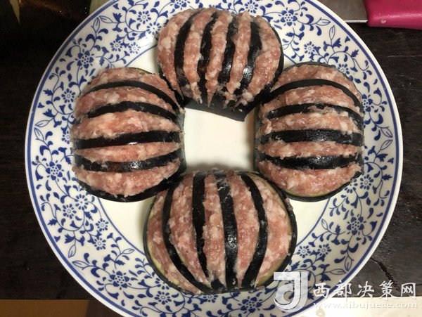 “今天買了一個大茄子,釀入豬肉餡,樣子像極了燈籠,如果你想顏色更深一點(diǎn),那就在調(diào)肉餡的時候加點(diǎn)老抽甚至加點(diǎn)紅曲粉,最后調(diào)澆汁的時候可以調(diào)成酸甜的番茄汁味,那就看起來更加的紅紅火火了。不過我還是比較喜歡這種小清新的風(fēng)格。這道菜一上桌,能把大魚大肉都比下去,好看好吃還喜慶。”