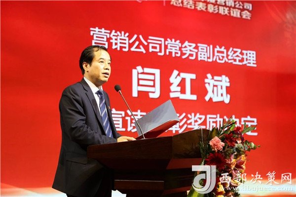 西鳳酒營銷公司常務(wù)副總經(jīng)理閆紅斌宣讀《關(guān)于對2018年度先進(jìn)單位、先進(jìn)個人給予表彰獎勵的決定》