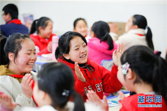 2月25日,在貴州省畢節(jié)市大方縣奢香古鎮(zhèn)恒大第十一小學(xué),孩子們?cè)陂_(kāi)學(xué)第一天的課間玩小游戲。  新華社發(fā)(羅大富 攝)