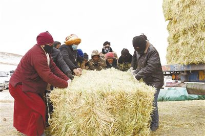 2月25日,玉樹藏族自治州玉樹市上拉秀鄉(xiāng)日瑪村,寒風(fēng)瑟瑟,村民內(nèi)心卻是無比溫暖,黨委政府下?lián)艿娘暡萘弦慌慌乩\(yùn)到了日瑪村,村民自發(fā)組織卸載搬運(yùn)飼草料,分到飼草料的牧民,用自家面包車?yán)\(yùn)飼料,臉上掛滿了笑容。