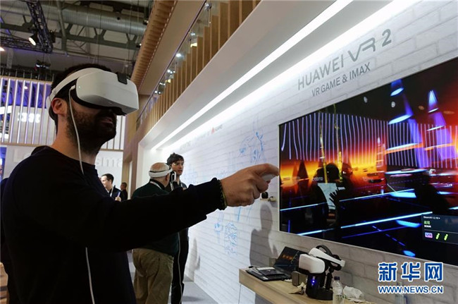 2月28日,在西班牙巴塞羅那,一名男子在世界移動(dòng)通信大會(huì)上的華為展區(qū)體驗(yàn)虛擬現(xiàn)實(shí)(VR)游戲。 新華社記者郭求達(dá)攝