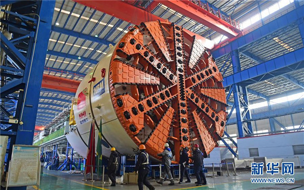 遼寧沈陽北方重工集團工人在拆解出口到巴西圣保羅的盾構(gòu)機(2016年1月28日攝)。 新華社記者 楊青 攝