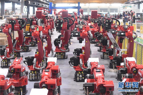 這是沈陽新松機器人公司生產(chǎn)的工業(yè)機器人(2017年6月6日攝)。 新華社記者 楊青 攝