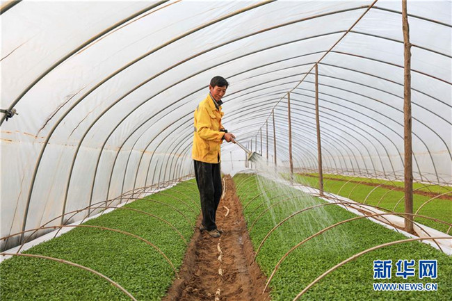 3月11日,在明光市管店鎮(zhèn)甜葉菊育苗扶貧基地,農(nóng)戶在甜葉菊育苗大棚內(nèi)忙碌。新華社記者 曹力 攝