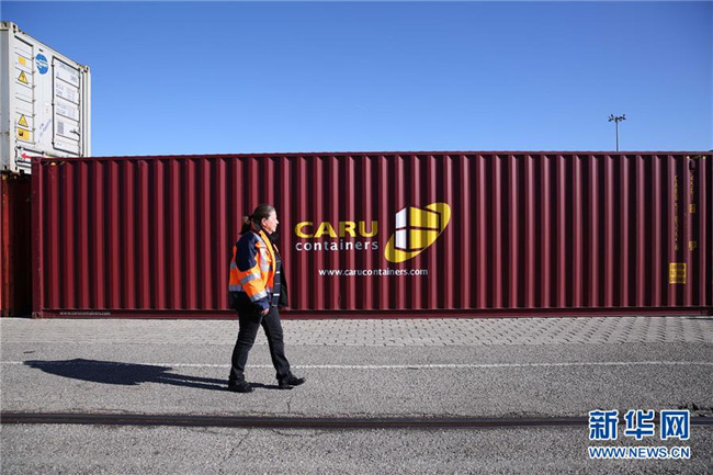 這是2019年3月5日,裝載有中國商品的集裝箱從中國武漢發(fā)出后,經由中歐班列運輸抵達法國里昂。 新華社記者 唐霽 攝