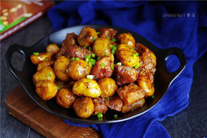 7.程序結(jié)束,【板栗紅燒肉】做好啦,出鍋撒蔥花。