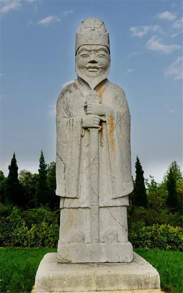 橋陵的石人身高都在4米左右,一個個面帶微笑,表情豐富,顯得氣度不凡,雍容華貴,反映了盛唐社會的和諧安定,經(jīng)濟(jì)上的欣欣向榮。雙眼皮、美人痣、波浪形的胡子讓你驚嘆雕刻手法的細(xì)膩傳神,尤其是1300年后連人的指甲蓋你都看的是一清二楚。