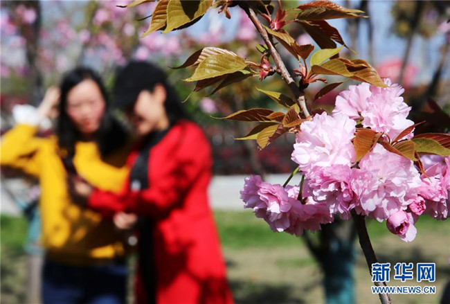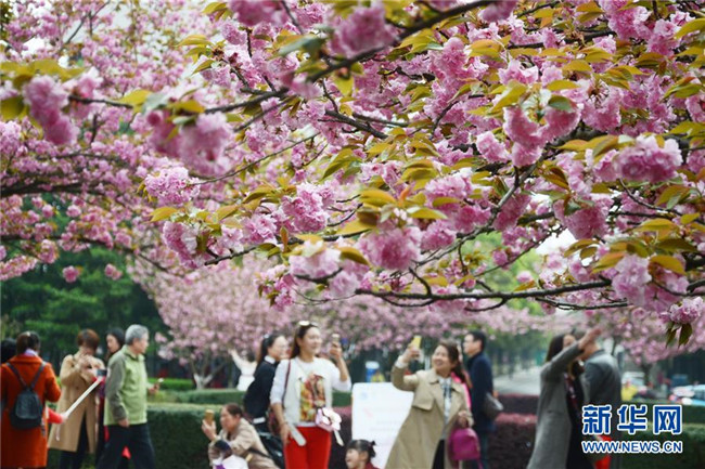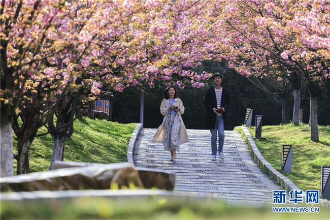 4月1日,市民在湖南省懷化學(xué)院賞花。新華社發(fā)(柴均林 攝)