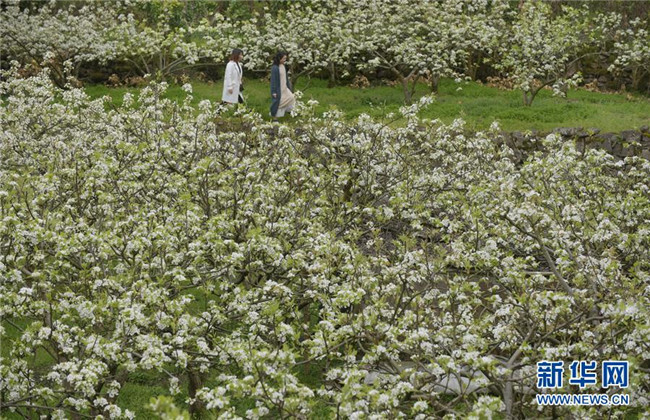 4月1日,游人在湖北宣恩縣椒園鎮(zhèn)黃坪村的一處梨園內(nèi)游玩。新華社發(fā)(王俊 攝)