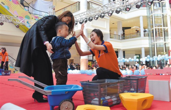 4月2日,早教老師與自閉癥患兒家庭協(xié)作完成互動游戲。當日是第十二個“世界自閉癥關注日”,圍繞今年的主題“消除誤區(qū),倡導全納”,銀川市文明辦、殘聯(lián)等單位聯(lián)合開展“藍色行動,愛不孤單”志愿服務,通過宣講、捐贈、游戲等方式,倡導人們尊重、愛護自閉癥患兒,助其融入社會大家庭?!∮浾?白茹 攝