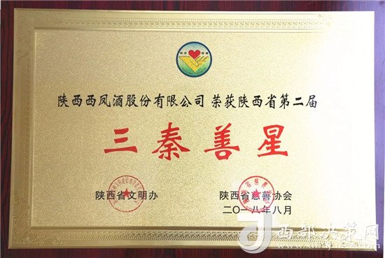 西鳳股份公司被授予陜西省第二屆“三秦善星”榮譽稱號