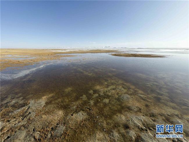 這是阿爾金山國家級自然保護(hù)區(qū)內(nèi)的依協(xié)克帕提湖一角(拼接照片,4月2日無人機(jī)拍攝)。 新華社記者 胡虎虎 攝