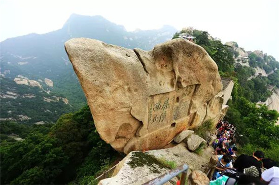 華山系一塊完整碩大的花崗巖體構(gòu)成,歷史衍化可追溯至27億年.“太華之山,削成而四方,其高五千仞,其廣十里。”華山之險居五岳之首,登山之路蜿蜒曲折,長達(dá)12公里,到處都是懸崖絕壁,有“自古華山一條道”的說法。