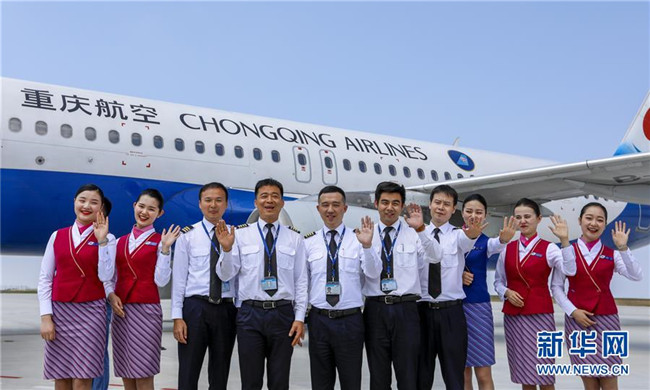 4月18日,重慶江北國際機(jī)場(chǎng)停機(jī)坪上,重慶航空公司的試飛機(jī)組成員向試飛工作地面輔助作業(yè)的工作人員揮手致意。當(dāng)日,隨著重慶航空一架客機(jī)安全平穩(wěn)降落在巫山機(jī)場(chǎng),標(biāo)志著地處長(zhǎng)江三峽核心區(qū)的巫山機(jī)場(chǎng)試飛工作圓滿成功。本次試飛對(duì)巫山機(jī)場(chǎng)陸空通信、導(dǎo)航設(shè)施、跑道道面、滑行路線、飛行區(qū)標(biāo)志標(biāo)識(shí)、機(jī)場(chǎng)凈空、飛行程序、機(jī)場(chǎng)運(yùn)行標(biāo)準(zhǔn)等進(jìn)行全面檢驗(yàn),各項(xiàng)參數(shù)和指標(biāo)正常,機(jī)場(chǎng)相關(guān)設(shè)施、設(shè)備均符合行業(yè)規(guī)范要求,飛行區(qū)已基本具備民航飛機(jī)通航條件,有望在今年6月正式通航。新華社記者 劉潺 攝