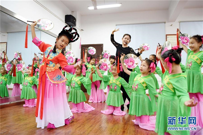 安徽銅陵市通過開展推薦一批經(jīng)典曲目、開設(shè)一節(jié)戲曲課程、組建一批興趣小組、創(chuàng)排一批優(yōu)秀劇目等“九個(gè)一”活動(dòng),推動(dòng)地方戲曲文化與學(xué)校教學(xué)實(shí)踐融合。目前,該市400余所中小學(xué)實(shí)現(xiàn)了戲曲教育、社團(tuán)建設(shè)全覆蓋。 新華社發(fā)(過仕寧 攝)