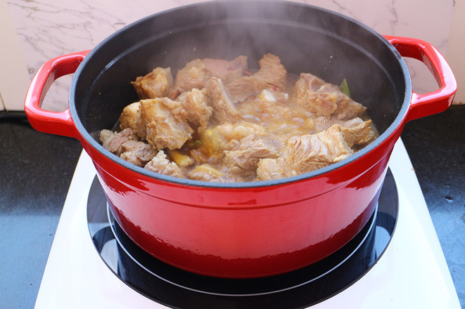 9.最后小火收汁,看到排骨燉爛,土豆熟透即可