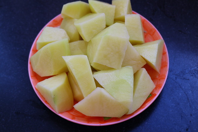 3.土豆去皮洗凈切滾刀塊