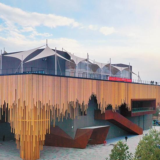 植物館外面褐色的鋼管象征著植物的根系。人民日?qǐng)?bào)記者賀勇攝