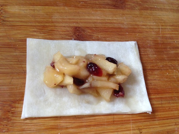 主料:蘋(píng)果1個(gè)  餛飩皮30張  蔓越莓干20克   黃油(餡料)8克