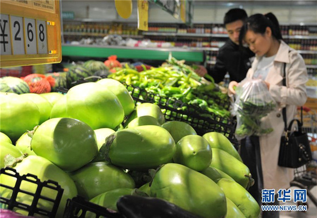 5月9日,顧客在河北省邯鄲市水廠路一家超市選購蔬菜。新華社發(fā)(王九忠 攝)