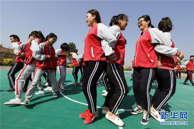 2019年高考臨近,多地高中開展形式多樣的減壓活動(dòng),幫助學(xué)生釋放緊張情緒,以平和、樂觀的心態(tài)迎接高考。新華社發(fā)(賈敏杰 攝)