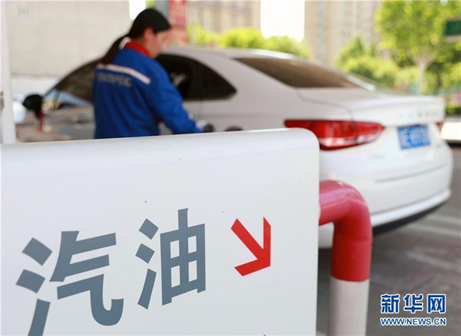 5月13日,河北省邢臺(tái)市任縣一家加油站的工作人員在給車(chē)輛加油。新華社發(fā)(宋杰 攝)