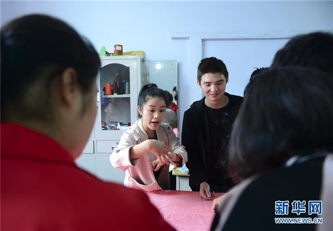5月15日,在畢節(jié)市特殊教育學校,老師在用手語指導學生縫制床單。 新華社發(fā)(尚宇杰 攝)