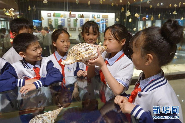 5月16日,學(xué)生們在青島貝殼博物館參觀展品。新華社發(fā)(王海濱 攝)