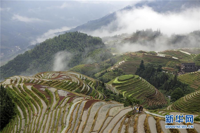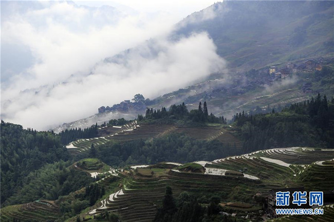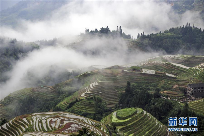 雨后的廣西龍勝各族自治縣龍脊梯田云霧升騰,村寨、梯田在云海中若隱若現(xiàn),美如仙境。 新華社發(fā)(劉滿倉 攝)