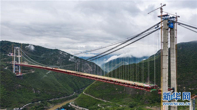 正在拼裝最后一片鋼桁梁的赤水河大橋(5月30日無(wú)人機(jī)拍攝)。 新華社記者 陶亮 攝