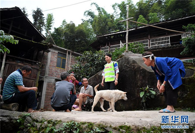 5月27日,在廣西柳州市三江侗族自治縣良口鄉(xiāng)燕茶村,吳純娟入戶了解村民家庭情況。