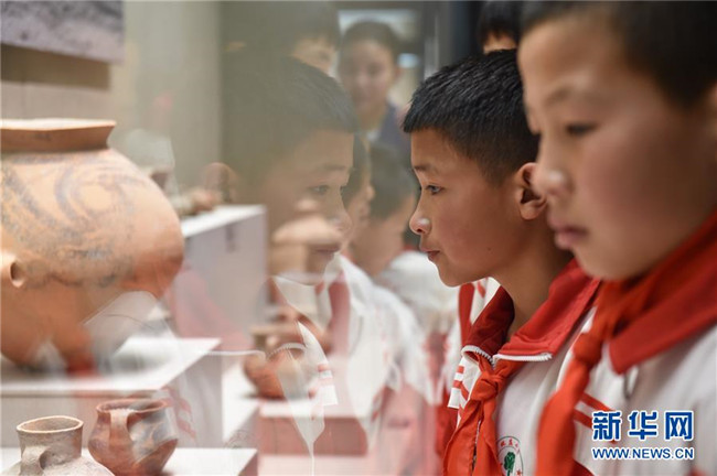 5月31日,學(xué)生們在寧夏固原博物館參觀。新華社記者 唐亞蒙 攝