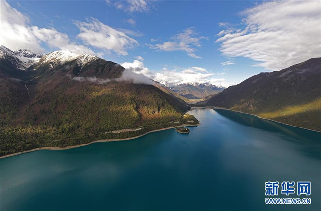 西藏林芝境內(nèi)的巴松湖(5月2日無人拍攝)。新華社記者 李鑫 攝
