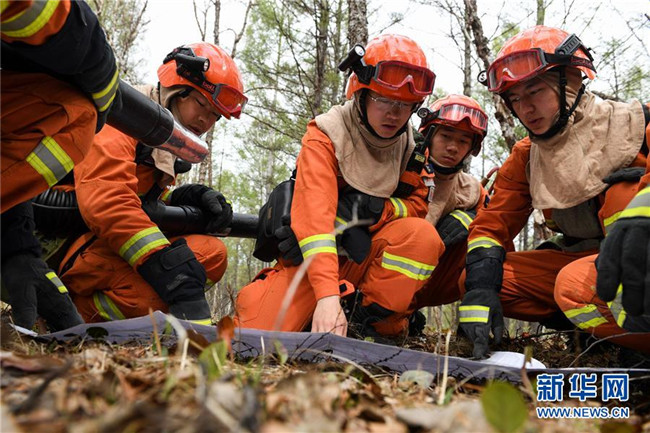 奇乾中隊(duì)的消防隊(duì)員在營地內(nèi)訓(xùn)練(5月15日攝)。新華社記者 劉磊 攝
