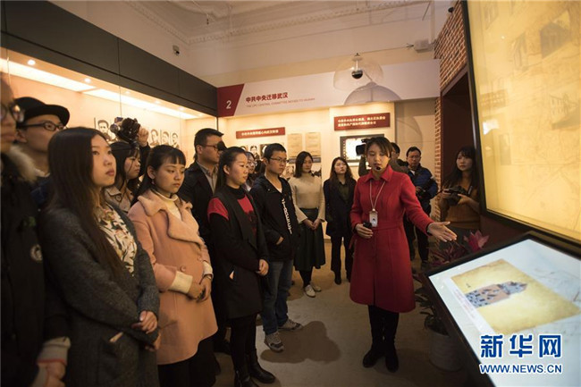 武漢大學(xué)的學(xué)生參觀武漢中共中央機關(guān)舊址紀(jì)念館(2017年3月26日攝)。新華社記者 熊琦 攝