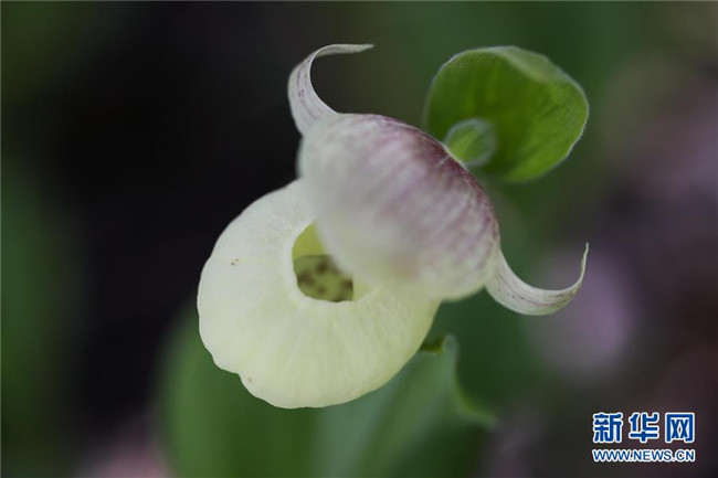 這是在四川黃龍自然保護(hù)區(qū)黃龍溝鈣化池邊拍攝的西藏杓蘭(6月12日攝)。 新華社記者江宏景攝