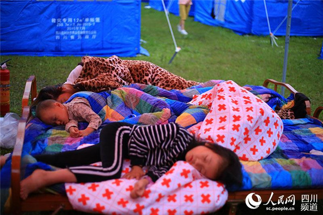 6月19日,宜賓長(zhǎng)寧地震后的第二個(gè)清晨,安置點(diǎn)內(nèi)還在熟睡的小朋友。(人民網(wǎng) 朱虹 攝)