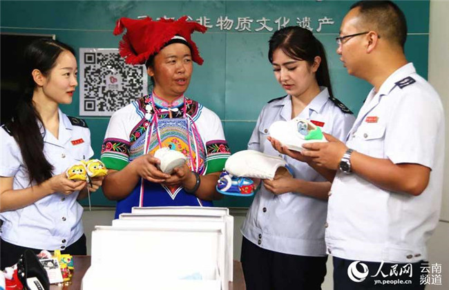 6月18日,恰逢硯山縣稅務局上門服務,王陸芬向稅務人員介紹產(chǎn)品。攝影:陸安恒