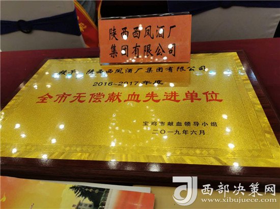 西鳳集團(tuán)公司榮獲“全市無(wú)償獻(xiàn)血先進(jìn)單位”稱(chēng)號(hào)