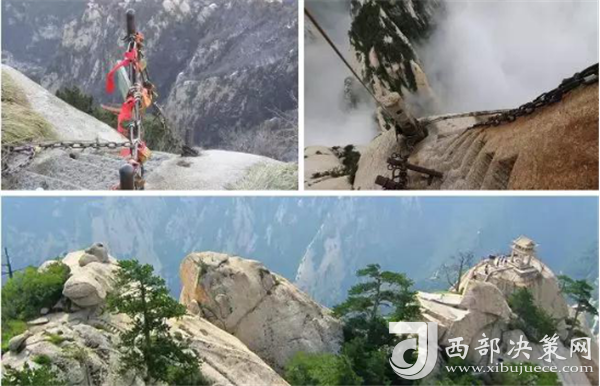 華山著名景區(qū)多達(dá)210余處,有凌空架設(shè)的長空棧道,三面臨空的鷂子翻身,以及在峭壁絕崖上鑿出的千尺幢、百尺峽、老君犁溝等,其中華岳仙掌被列為關(guān)中八景之首。