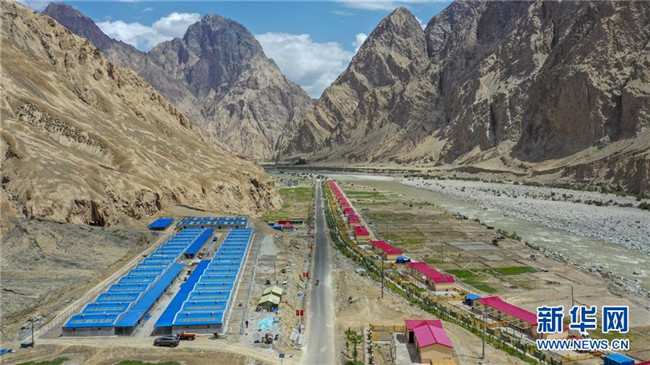 這是在新疆塔什庫爾干塔吉克自治縣大同鄉(xiāng)克其克同村拍攝的一處易地扶貧搬遷安置點(6月18日無人機拍攝)。新華社記者胡虎虎攝