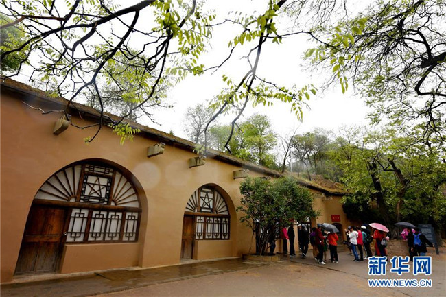 參觀者在陜西延安棗園革命舊址參觀(5月8日攝)。新華社記者 劉瀟 攝