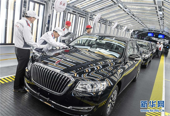 工人在位于吉林長春的一汽紅旗總裝車間內(nèi)進(jìn)行車輛靜檢作業(yè)(4月9日攝)。新華社記者許暢攝