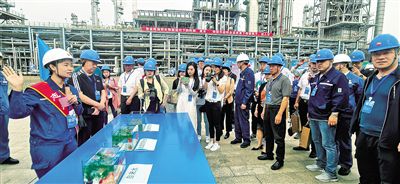 近日,中國(guó)石油呼和浩特石化公司工作人員為嘉賓展示用處理后的污水養(yǎng)魚(yú)。本報(bào)記者 李永桃 攝