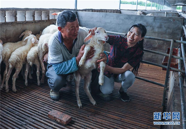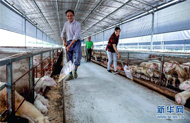 7月21日,在長興德睿生態(tài)農業(yè)開發(fā)有限公司,低收入農戶在檢查湖羊生長情況。新華社記者 徐昱 攝