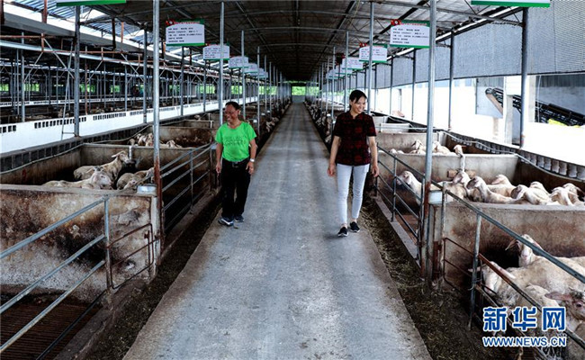 7月21日,在長興德睿生態(tài)農業(yè)開發(fā)有限公司,低收入農戶在查看湖羊。新華社記者 徐昱 攝