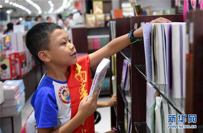 當日,廣西南寧書城在“2019年暑假好書伴我成長”沙龍活動中,征集部分小朋友在書城里擔任“小小圖書管理員”,讓孩子們親身體會到圖書管理員的艱辛與快樂。 新華社記者 陸波岸 攝