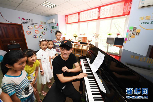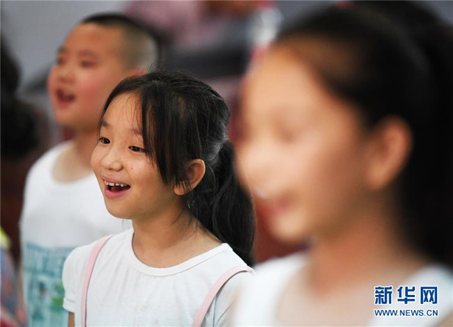 8月5日,小朋友們?cè)谝魳放嘤?xùn)班上。新華社記者 王全超 攝