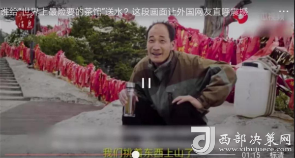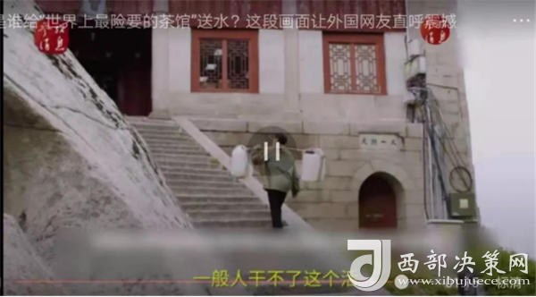 視頻介紹,煮茶所需的水都是挑山工肩挑背扛運(yùn)上來(lái)的。